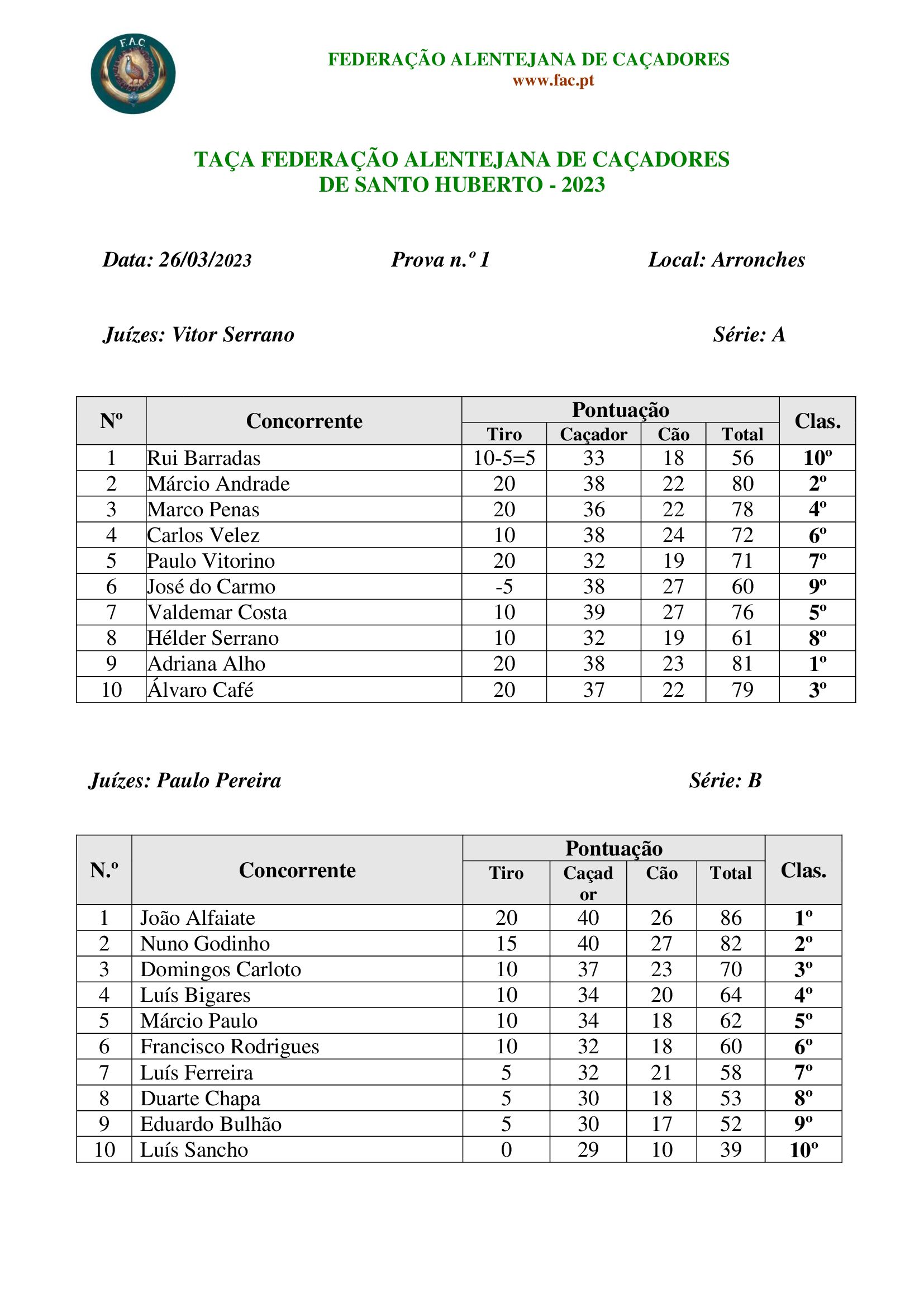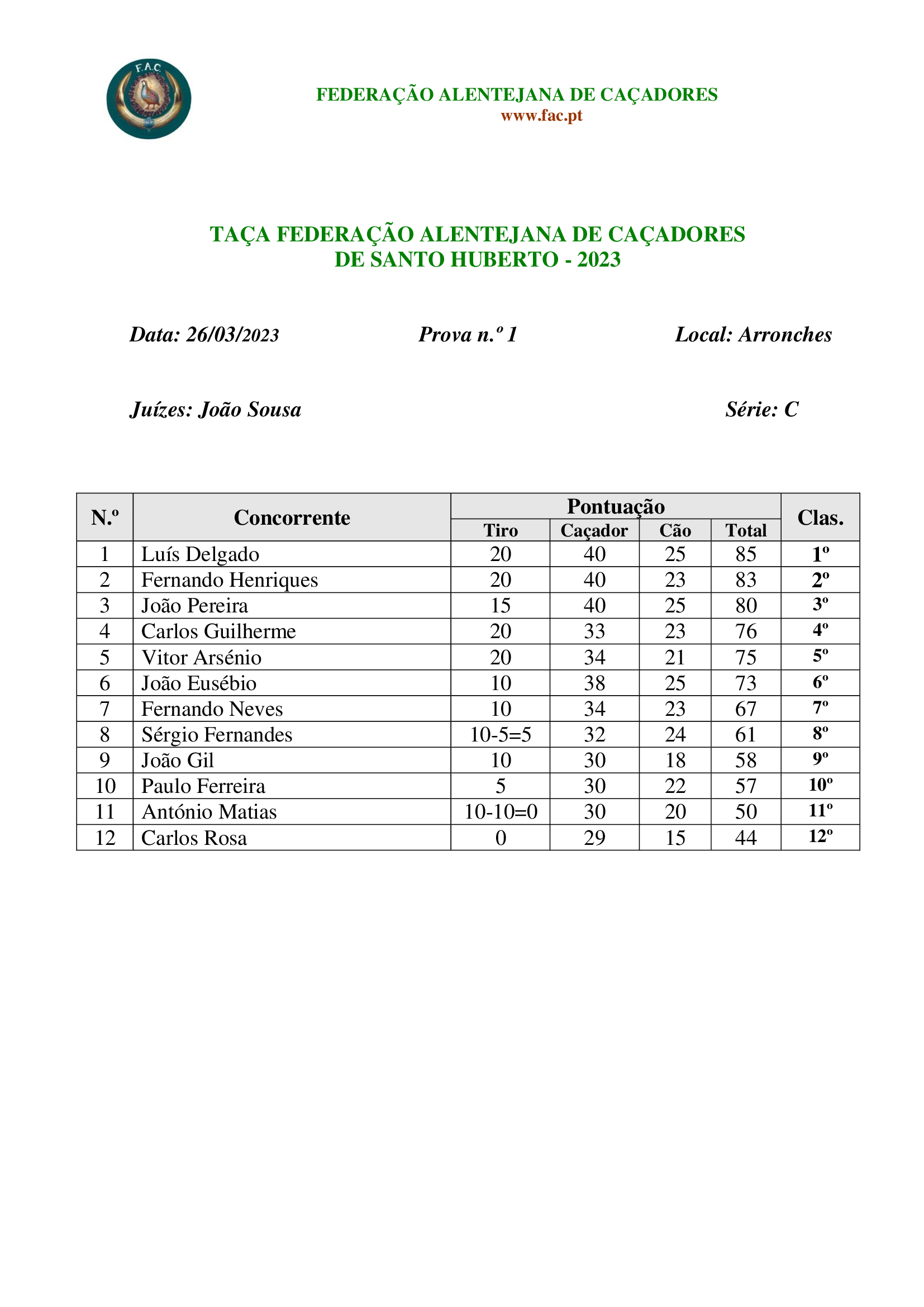 Realizou-se, no passado dia 26 de Março, a 1ª Prova do calendário da Taça Federação Alentejana de Caçadores de Stº Huberto – Troféu José Gonçalves, 2023.